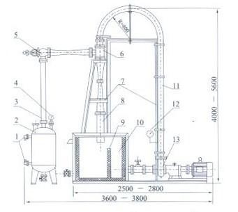 蒸汽噴射泵:文丘里管內(nèi)襯石墨,泵體為鑄鐵內(nèi)涂聚三氟氯乙烯(F3)